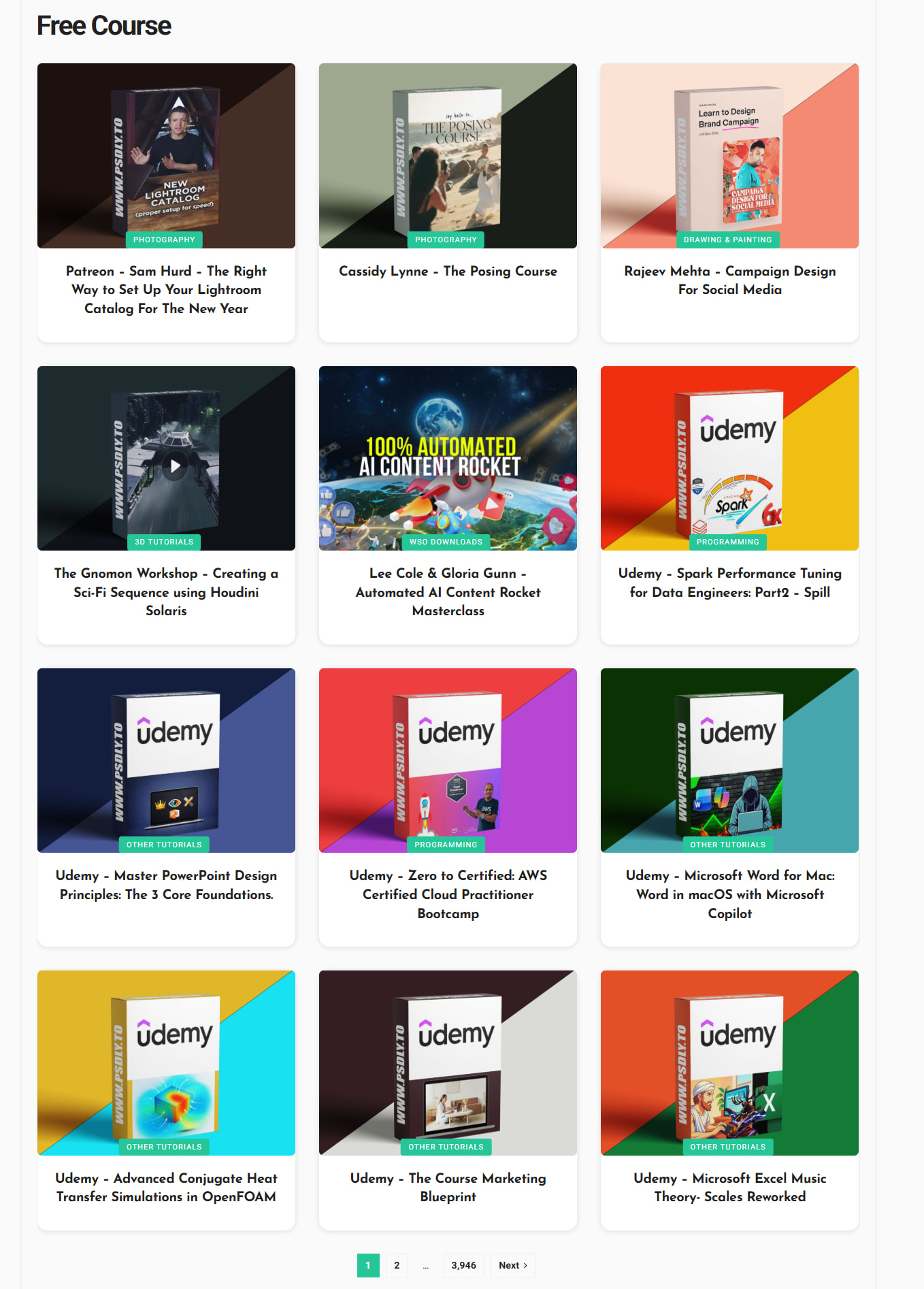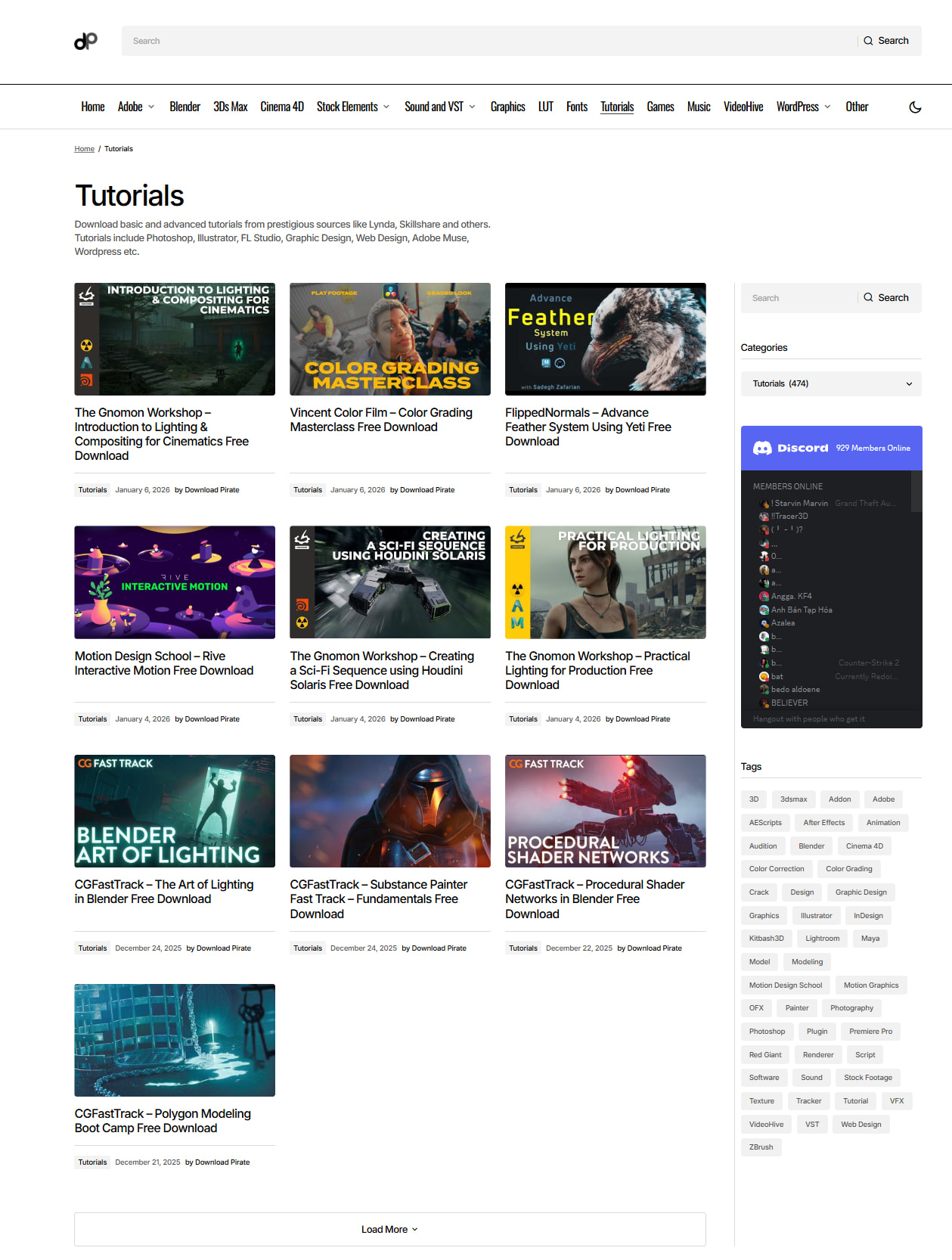 Massive collection spanning video editing, design, 3D, and learning resources.