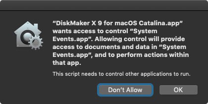 - Open DiskMakerX and allow the permission by clicking on “OK”