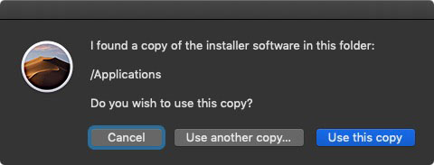 - DiskMakerX will search for your copy of macOS Catalina installer. Once it found your Catalina copy, it will ask if you want to use the copy that it found or you want to use another copy. Select “Use this copy”