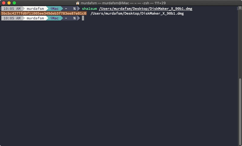 Verify DiskMakerX’s checksum. To do that, open up the terminal and type