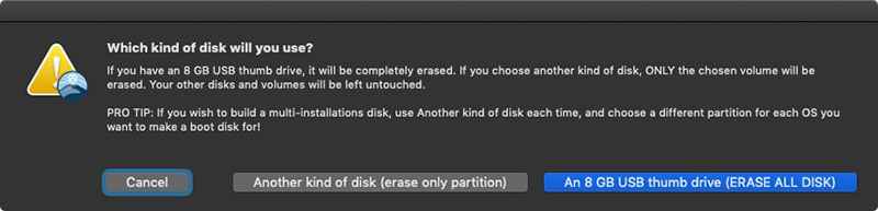 - Choose where you want DiskMakerX to create the bootable drive. In this case choose the thumb drive.