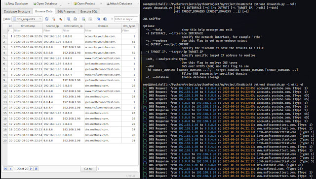 DNSWatch is a Python-based tool that allows you to sniff and analyze DNS (Domain Name System) traffic on your network. It listens to DNS requests and responses and provides insights into the DNS activity.