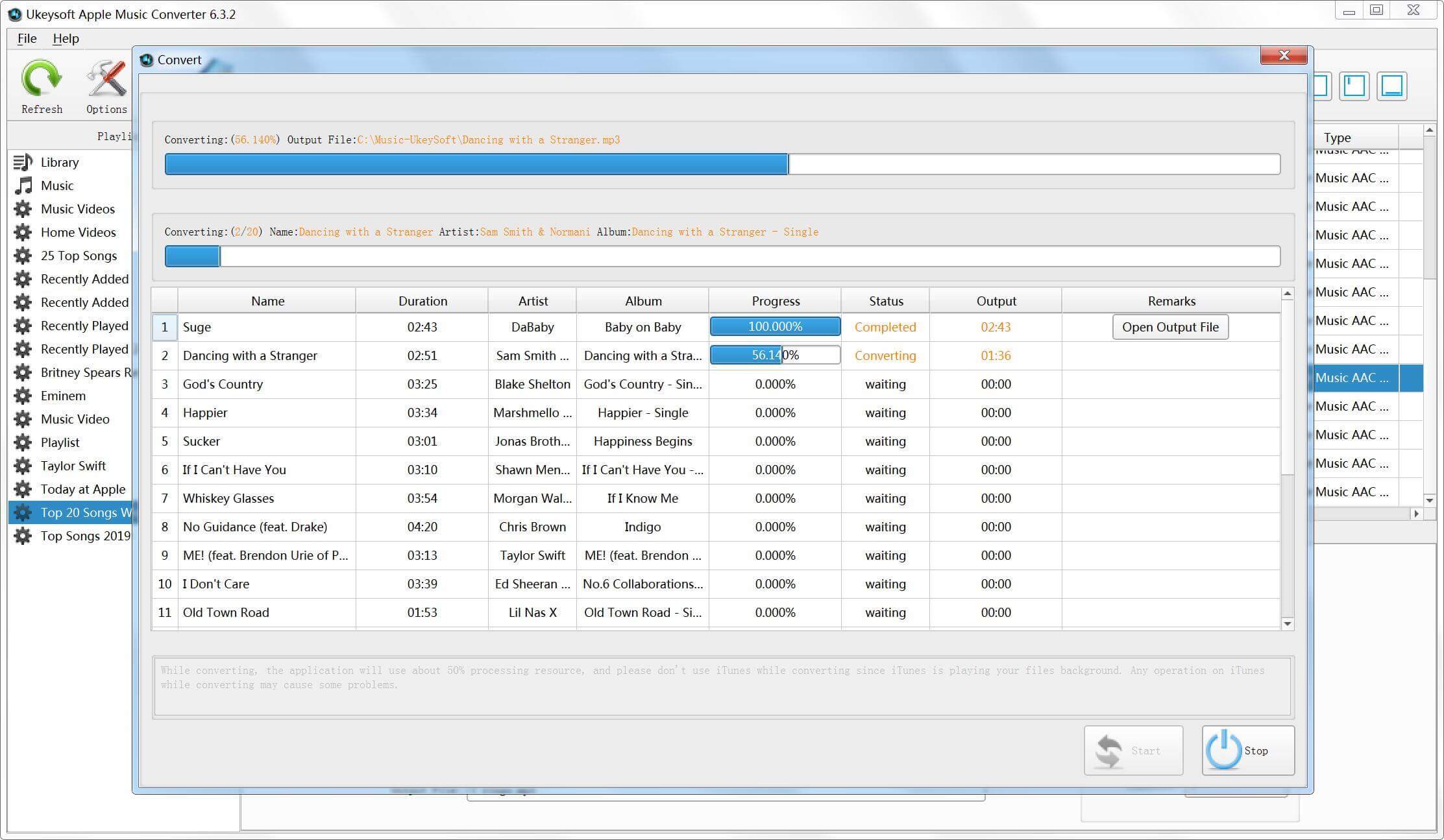 Step 2. The UkeySoft Apple Music Converter will launch iTunes and loads all Apple Music songs.