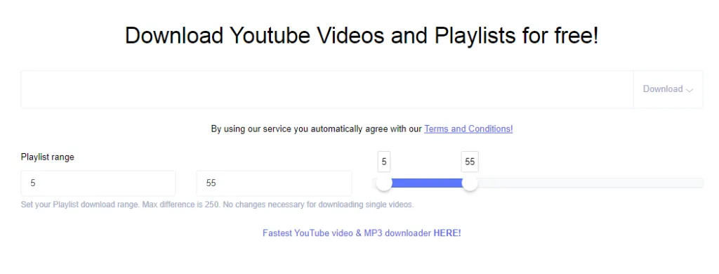 ddownr is a free online YouTube video downloader that also supports playlists. Just paste the playlist URL into the text box, specify the range of videos from the playlist that you want to download (up to 250), and hit Download . The videos save in a Zip file.