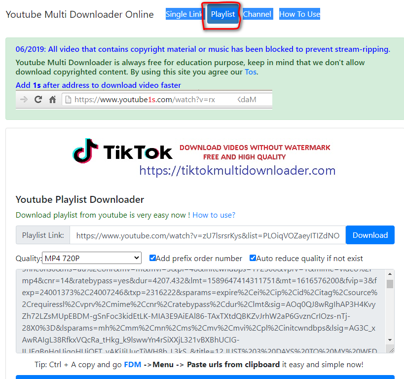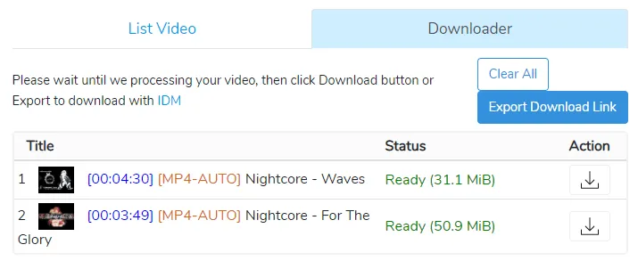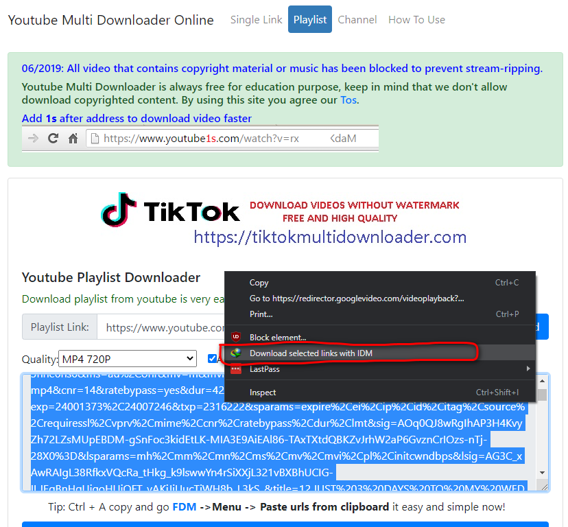 On the final download page, select the download button next to each video or select Export Download Link , and use that URL in Internet Download Manager to save all the playlist files.