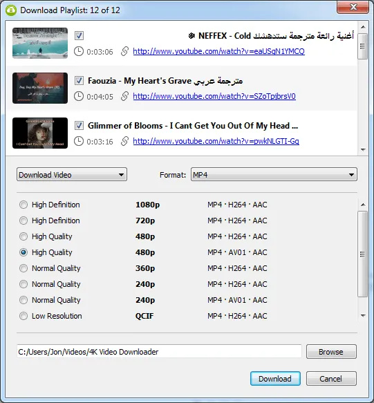 4K Video Downloader is another offline YouTube playlist downloader that works with Windows, Mac, and Ubuntu operating systems, in both installable and portable versions. It lets you download all the videos from a playlist or just specific ones, in either a video or audio file format.
