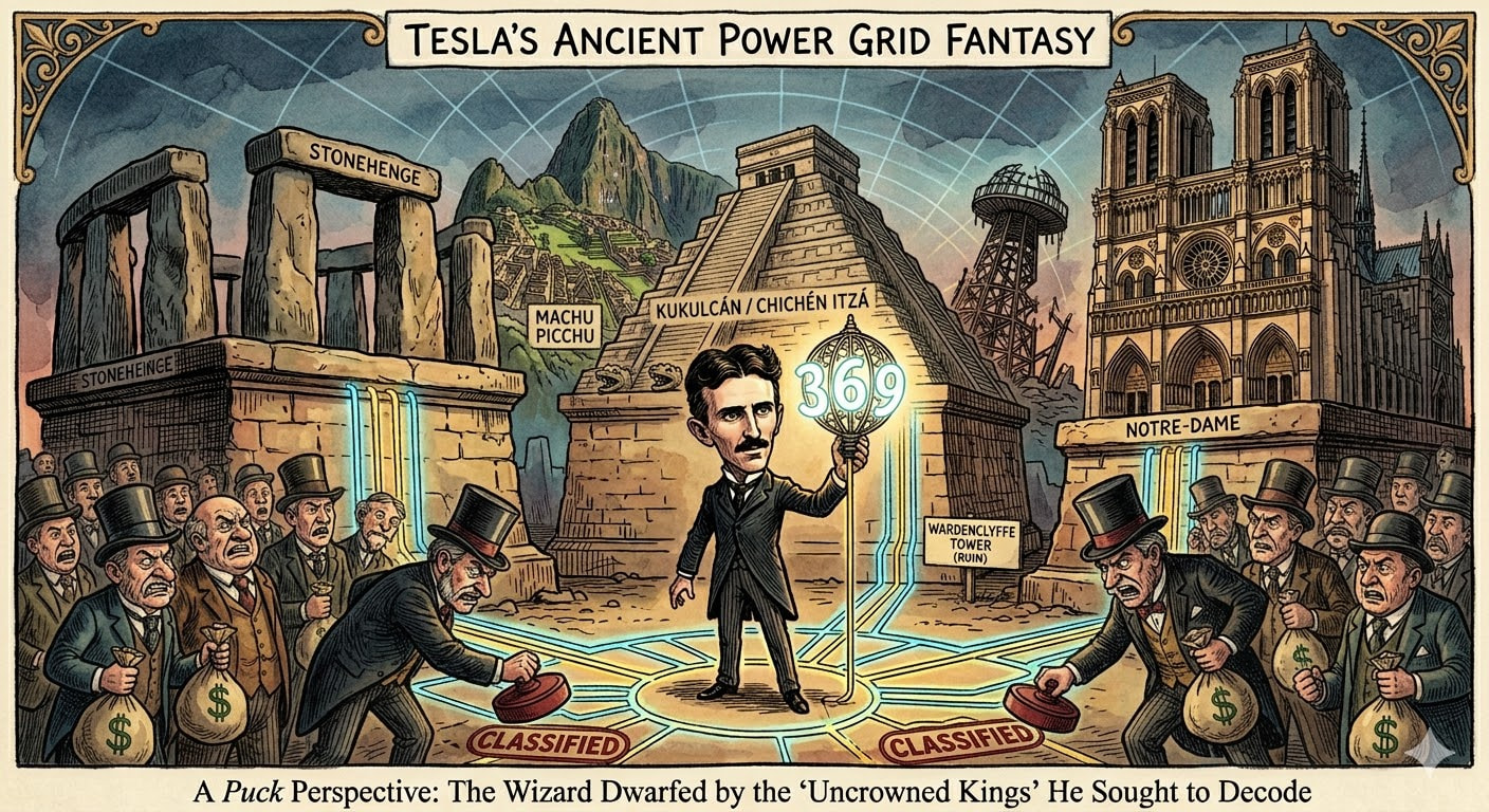 The frequency link: Stonehenge hums at 10.4 Hz. The Kukulcán pyramid echoes at a bird’s exact frequency. Tesla said the universe IS frequency. Every ancient site = built around frequency. Tesla tried to harness frequency. The conspiracy version: same project, 5,000 years apart.