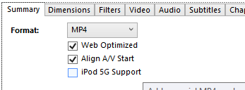 Select Web Optimized and Align A/V for the making the video file more steamable and more better compressed.