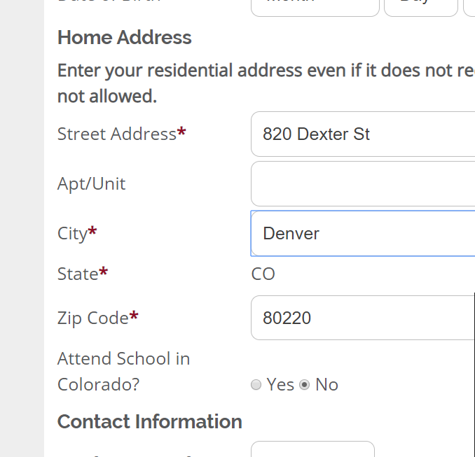Then fill your details, you can fill your own details, for street and zip code use google map, search Denver and choose any street Randomly and do Captcha and Submit.