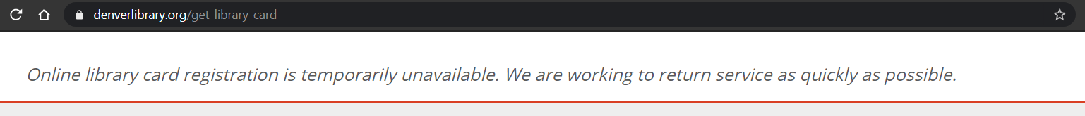Online library card registration is temporarily unavailable. We are working to return service as quickly as possible.