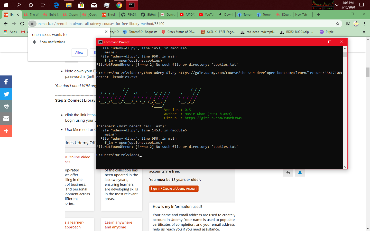 at last i come in last step but what is now?? i have put the cookies.txt file in folder already…please help