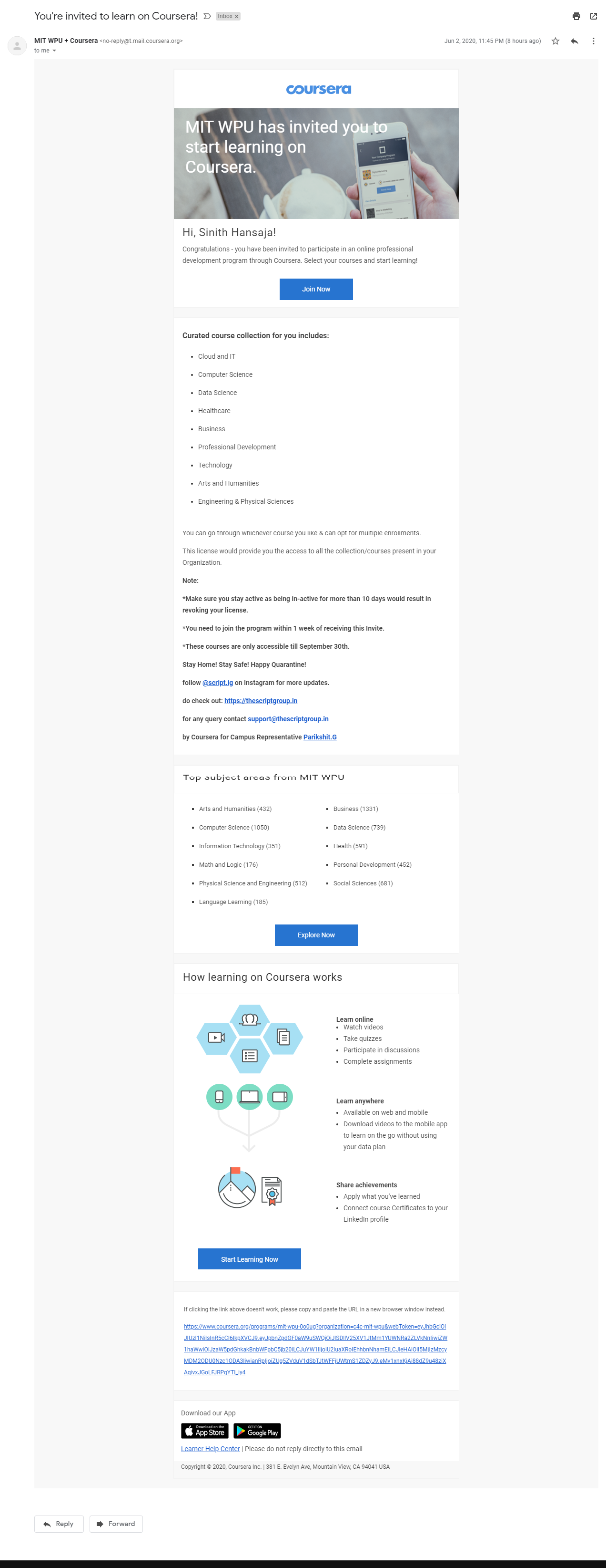 You don’t need to be a MIT-WPU student to be enrolled, you just need an email address to receive the invite we’ll be sending out
