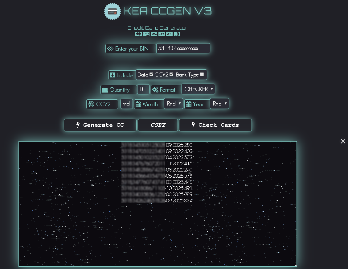 - Then add the generated card using the bin (do not check for lives add the card directly)