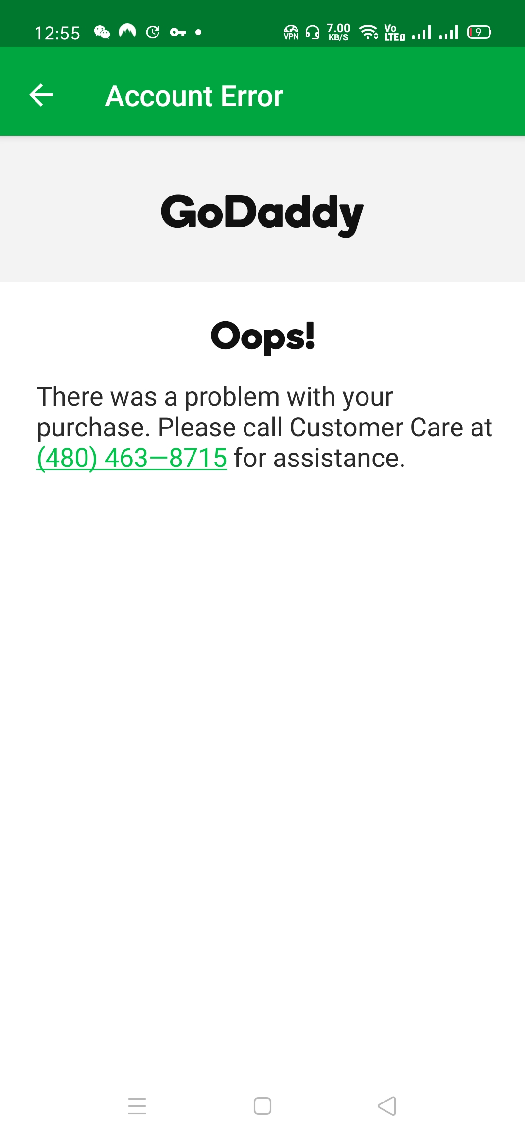 i was having the same problem,just login into godaddy using another device.
