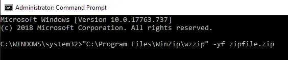 - In the Command Prompt window, change directories to where the corrupt ZIP archive is located. Type “C:\Program Files\WinZip\wzzip” -yf zipfile.zip into the field (double quotes included) and press Enter .