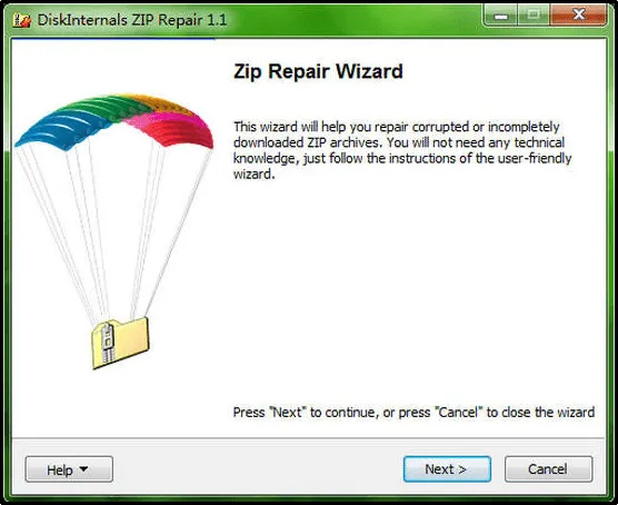 - From ZIP Repair’s home screen window, click the Next button to continue.