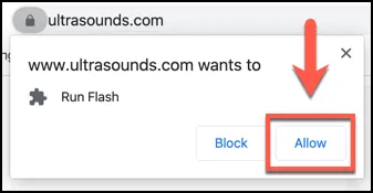 - Return to the page with Flash content and refresh it. Chrome will ask you if you want to run the Flash content, so click Allow to run the content.