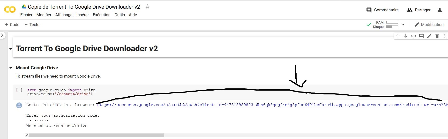 5. Now it’s time to link your buffed google drive. Click on the first link in the code (https://accounts.google.com/o/oauth2/auth?client_id=xxxxxxxx).