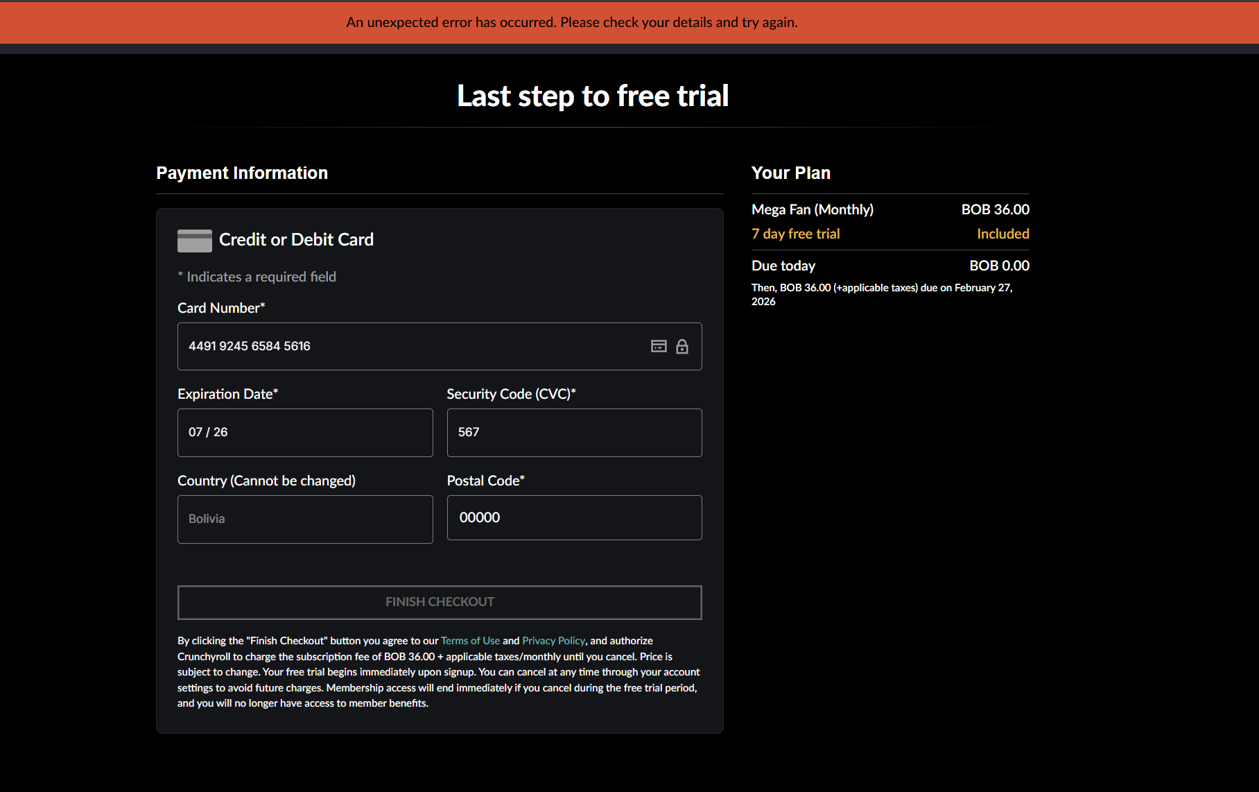 449192 Visa — Bolivia-routed, gateway-verified for Sony’s 2026 Crunchyroll backend. Mega Fan unlocks offline downloads, 4K streaming, multi-screen, and zero ads. The AI upscaling on older anime alone is worth it.