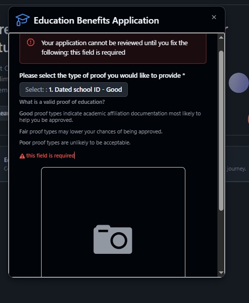 i used the ID that was in profile of the student portal for the verification, just get the screenshot of it.