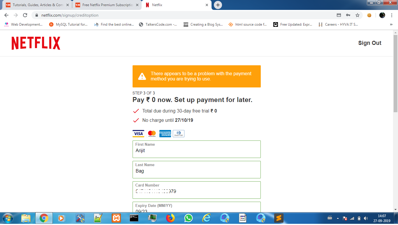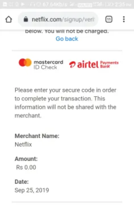 Hey.. @TheJoker sorry to say but the stuff posted is wrong .. because Netflix verifies that after accepting the card details and then transaction gets declined β¦so please close the thread β¦