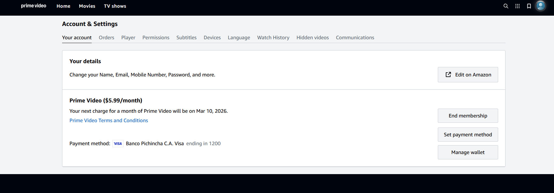 Ecuador’s Prime Video checkout skips CVV entirely. VPN in, generate a card, use the Ibarra address, done. The 7-day trial flips to monthly autopay automatically — cancel before day 7 if you just want the free window.