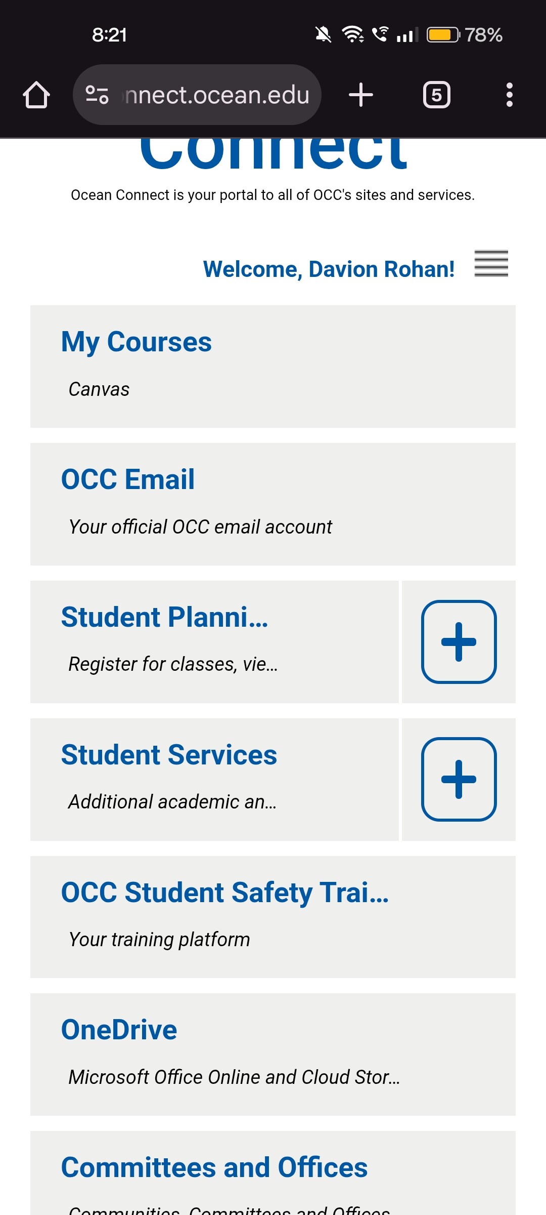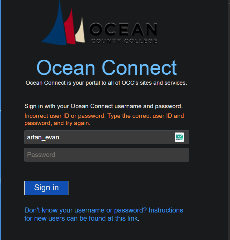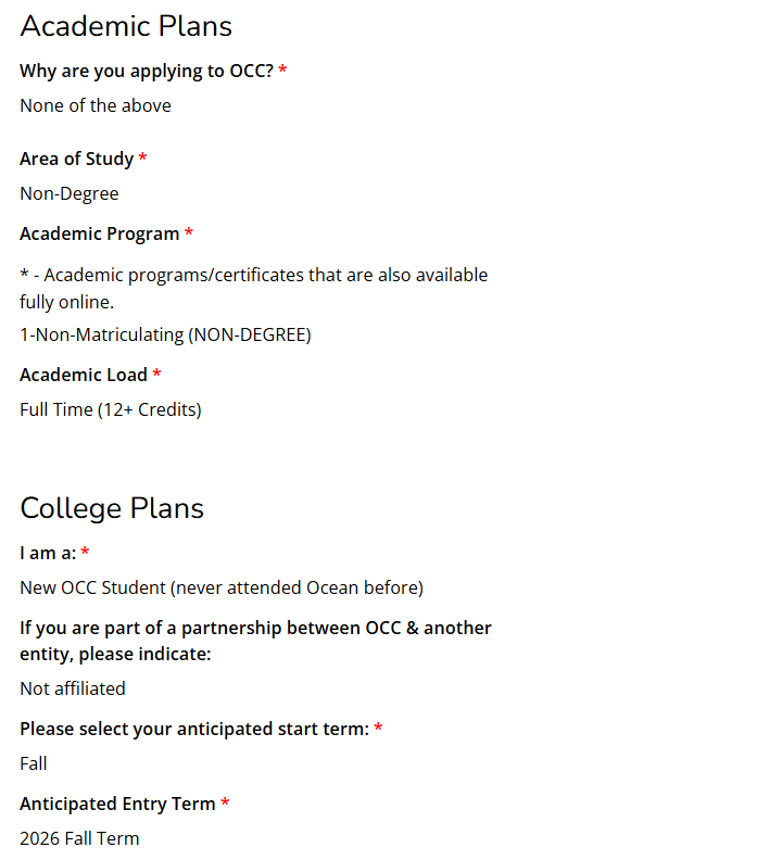 I am a: New OCC Student (never attended Ocean before) Returning OCC Student (I have attended before) Student transferring to OCC from another institution