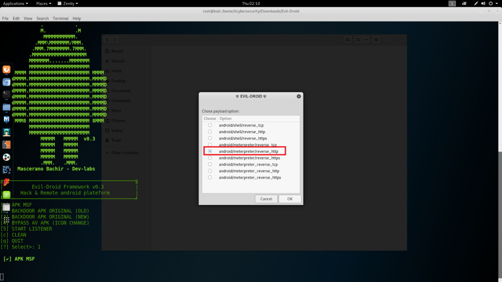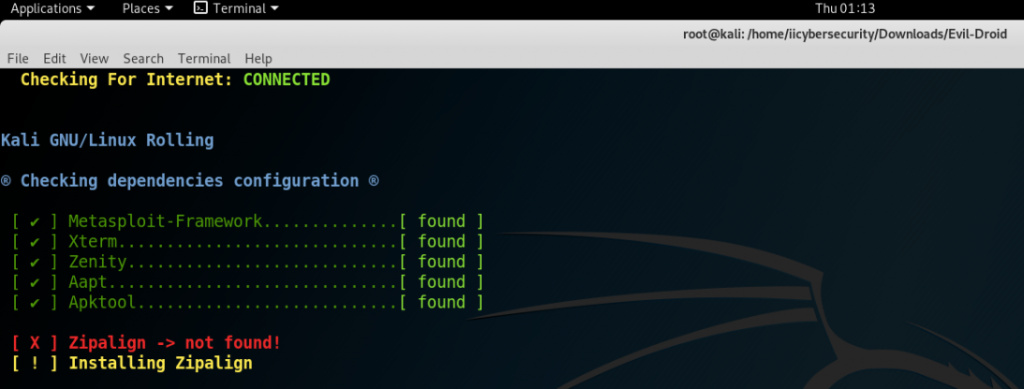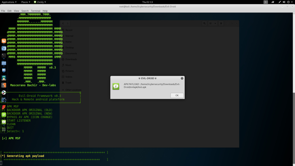 - Evil-Droid has been installed on Kali Linux 2018.4 amd64.