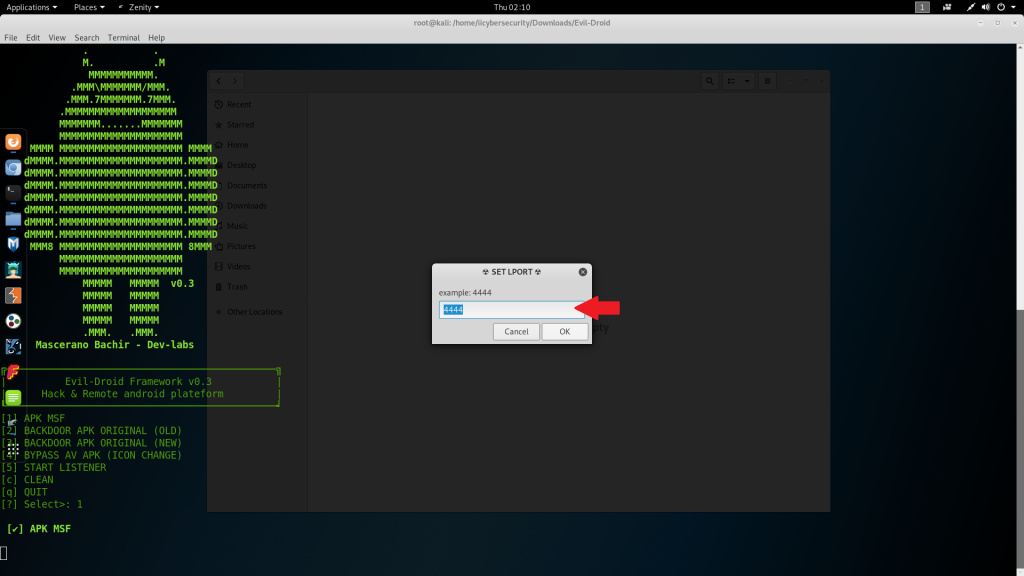 - Type ./evil-droid