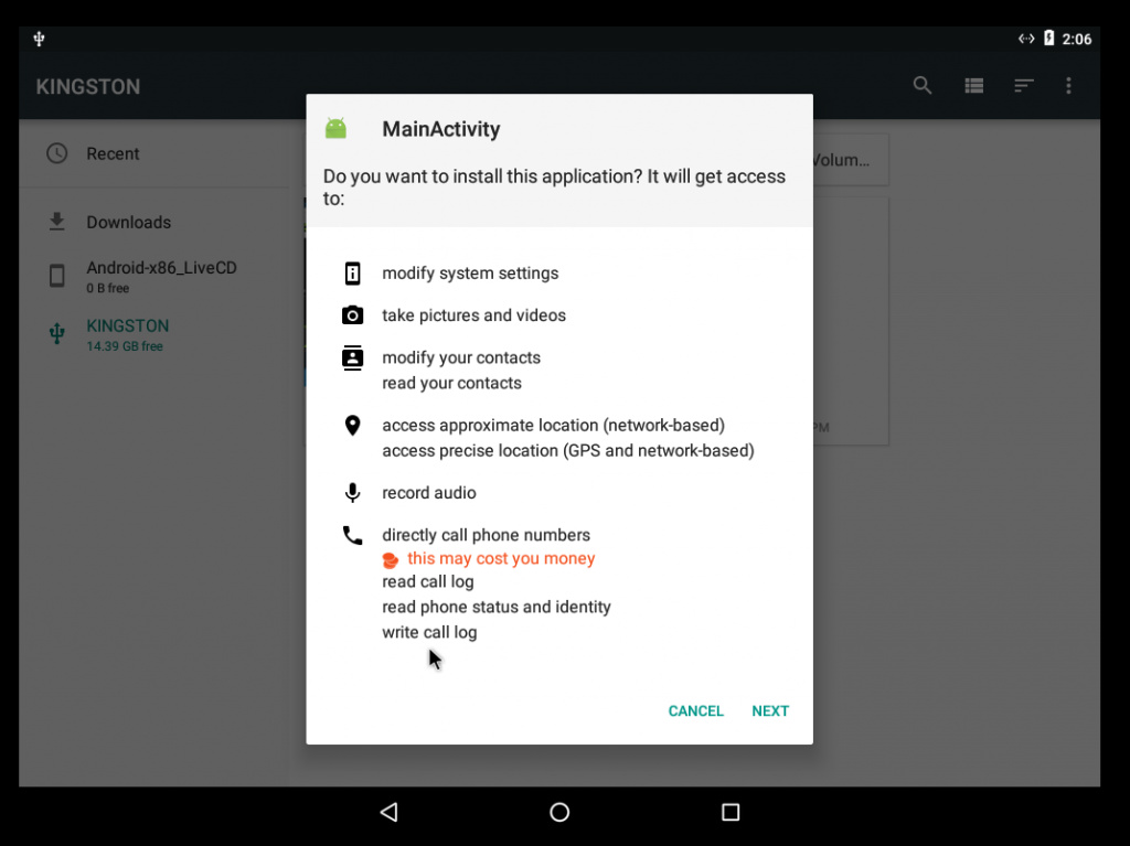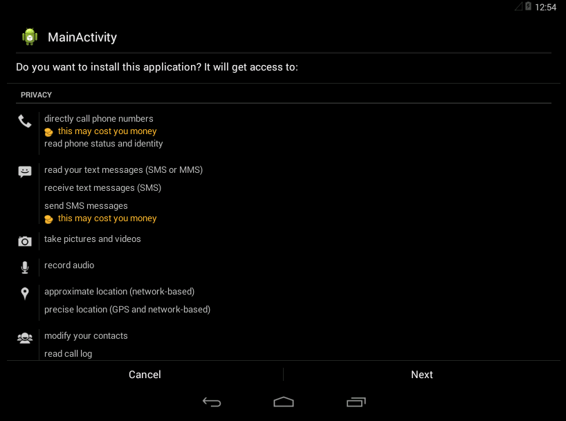 - Install the malicious test apk into the android 4.4