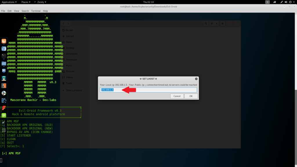 - Type local IP address (attacker’s IP address) Type 192.168.1.5
