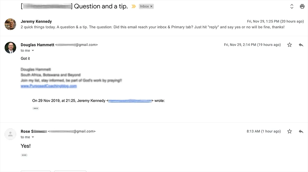 We saw our emails were inboxing (not spam or promo) and decided to ask those people we were mailing that signed up to our list… here’s what happened…