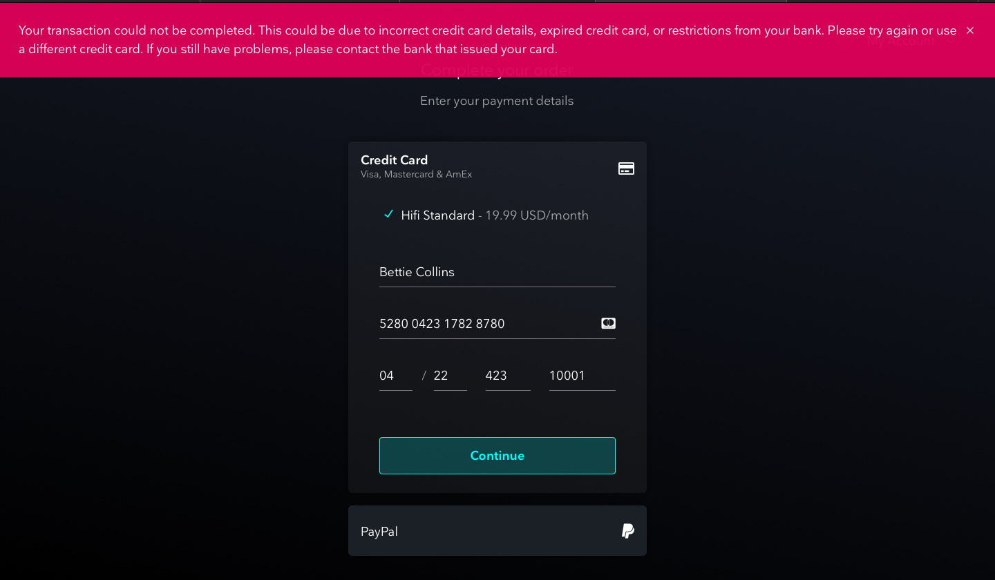 3. Copy one of those generated CC and paste in the payment section of your website.