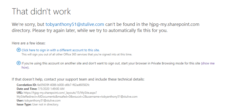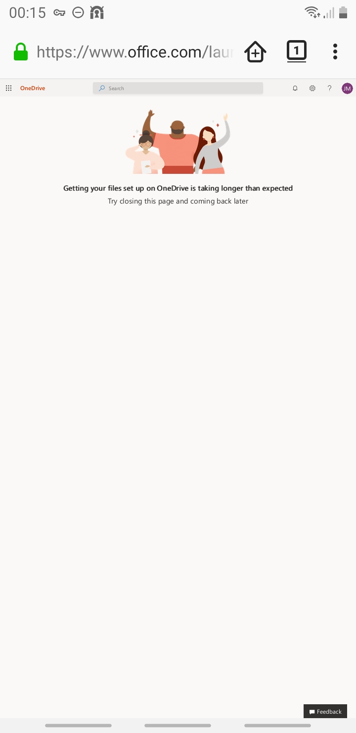 Hi, i get account and when i click at the onedrive icon at the starting page, it loads for few mins and gives error"talking long time to setup onedrive".