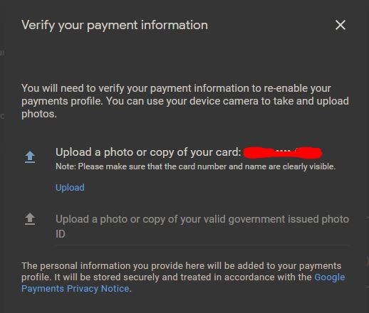 Thanks a lot, pal! @TheSpecialOne I tried the method and did a couple of in-app purchases [in a Miniclip game], bought a bunch of stuff [a couple of books and movies]. It was a sweet surprise until it wasn’t. A couple of hours later I open Playstore only to get a notification that my account has been suspended And that I need to verify and submit a copy of documents and a copy of the card that was used for above purchases. Please, any help is very much appreciated as it is my main/personal account.