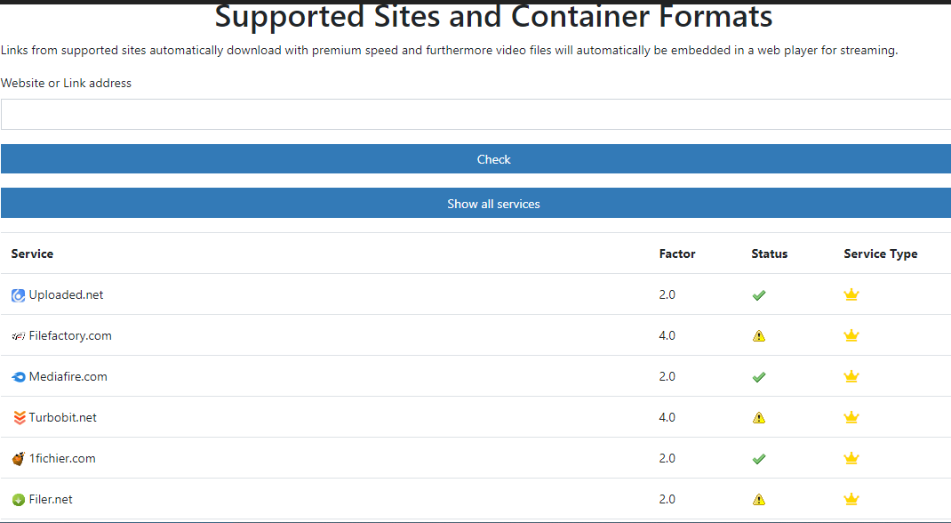 The Fair Use System which is included in every premium accounts starts out 1000 points that can be used over all of our services.To check all supported links you can see here