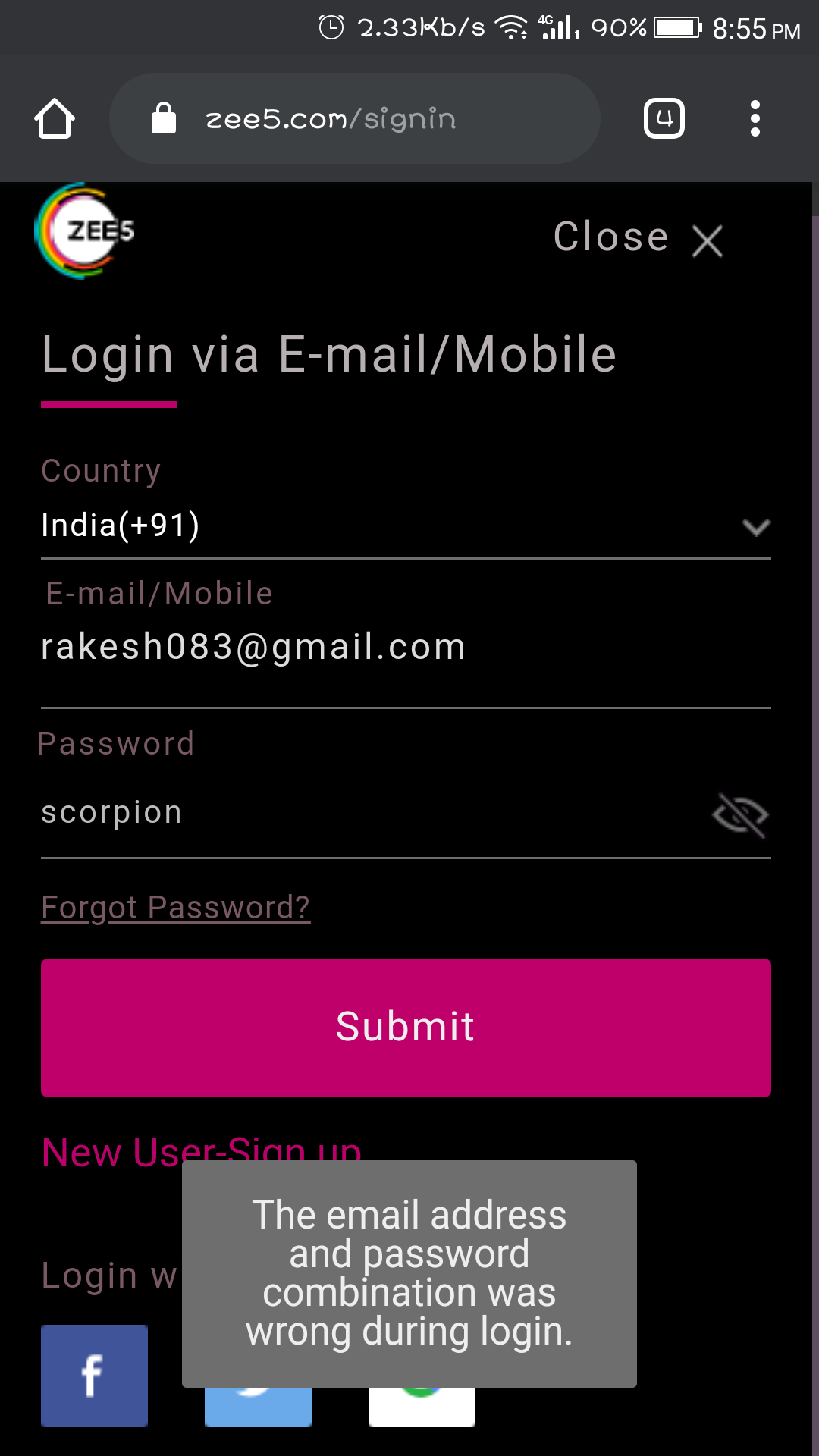 can’t login zee5 account