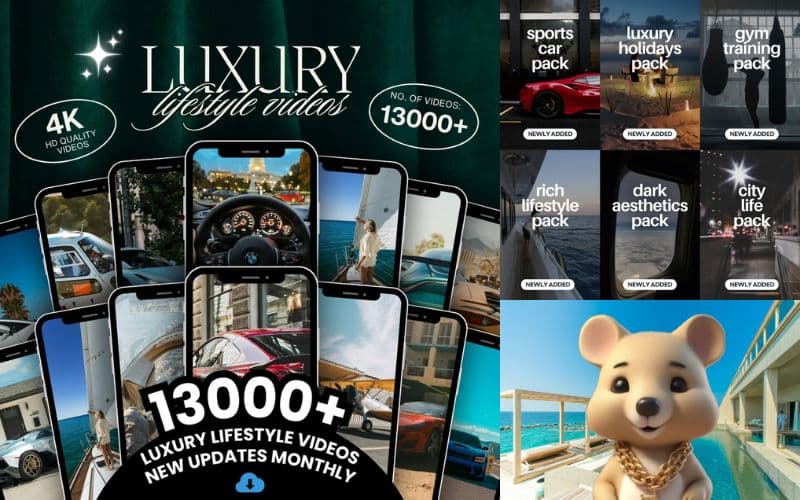 13,000+ Videos: A diverse selection of luxury-themed videos showcasing the most exquisite aspects of a high-end lifestyle.