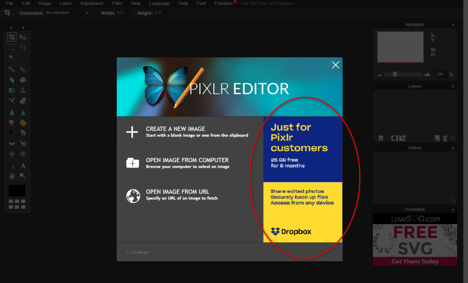 Pixlr is giving it’s customers 25GB Dropbox storage free for 6 Months.