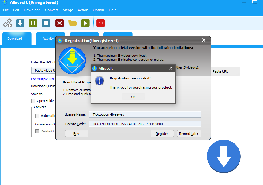 Step 2. Tickcoupon Giveaway is co-operating with Allavsoft to give you the lifetime license for free.