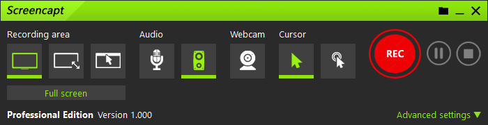 - ASCOMP Screencapt Professional provides several recording options, including full-screen recording, recording a specific area, and recording a window.