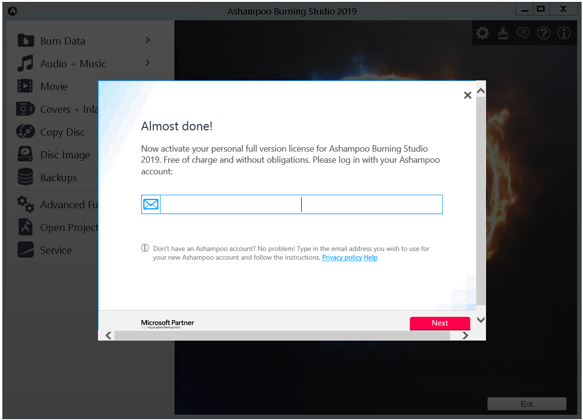 Step 2. To get the full version license for Ashampoo Burning Studio 2023, please log in with your Ashampoo account