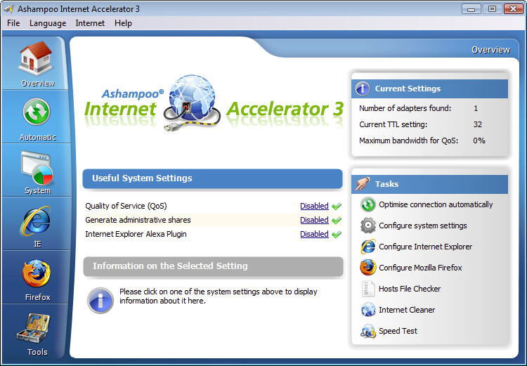 - Ashampoo Internet Accelerator allows you to configure Internet Explorer and Firefox and boost their performance right