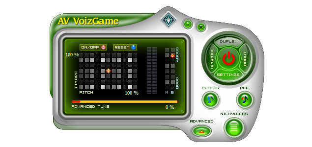 AV VoizGame gives you well selected 10 nickvoices of both male and female specialized for online role-playing games. Now you can totally disguise your real identity and have fun.