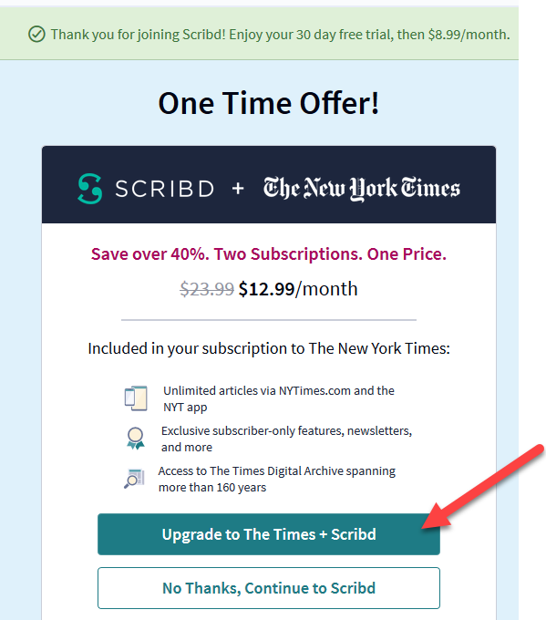 Hey @deeptoneblack , NYTimes thinks that you are gonna keep the subscription forever, its just their way to describe your membership. When they will try to charge you for the payment after 30 days its going to fail so the membership won’t be valid anymore. Cheers!