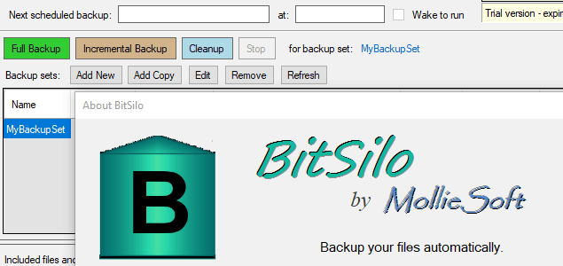 BitSilo by MollieSoft is a software that helps to backs up files on Windows automatically. With many options, you will easily select files or folders to backup and restore when the system goes wrong.