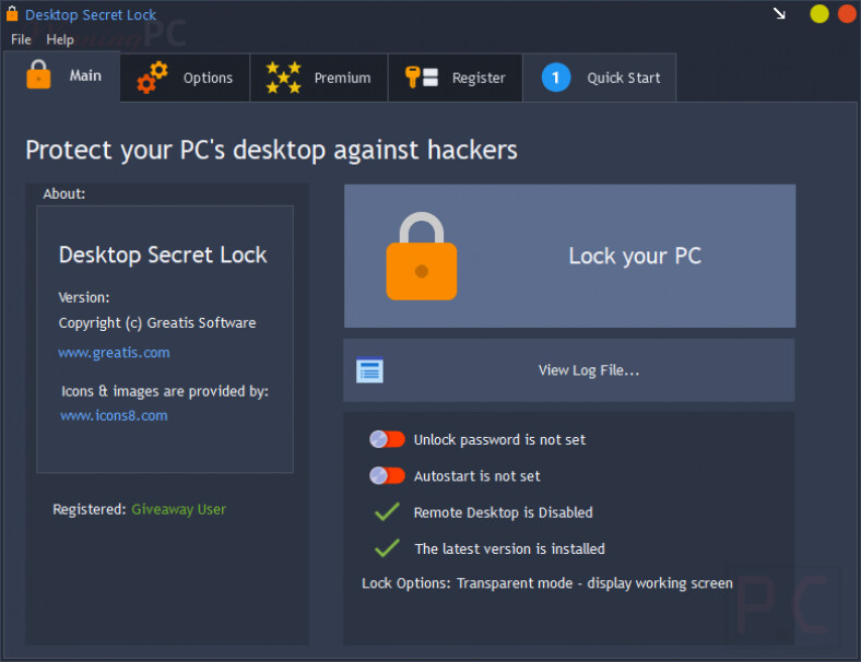 Download and install Desktop Secret Lock Premium (use the download link above). After installation, open the software and register by using the giveaway license key.