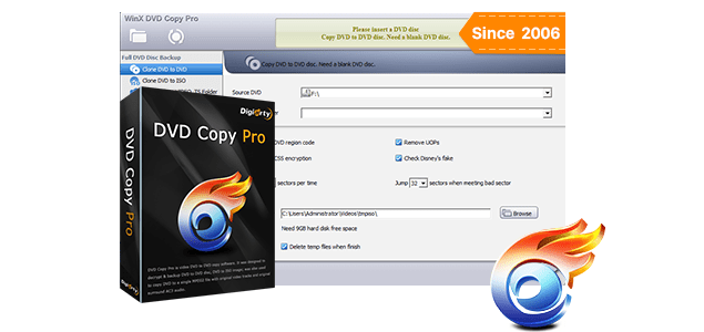 WinX DVD Copy Pro is specially designed to clone DVD to DVD disc for safe storage; copy DVD to ISO image; mount DVD ISO image and burn ISO image or VIDEO_TS folder to DVD disc.