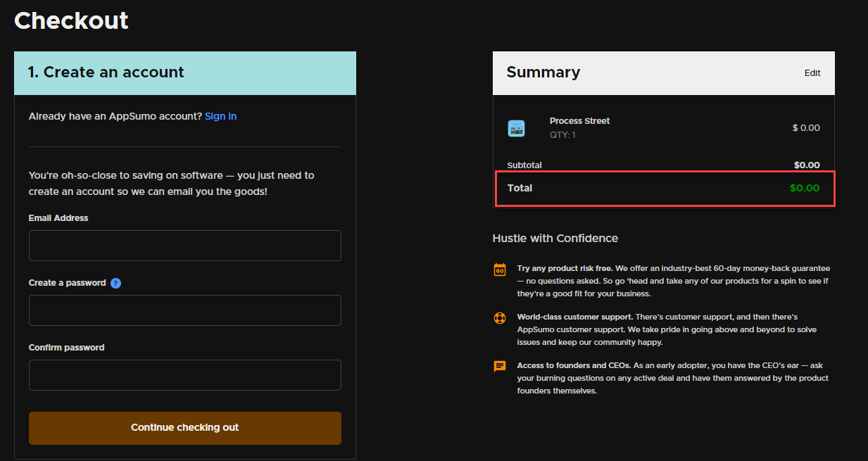 Once you hit Redeem you will be redirected to the Process Street website to create an account.
