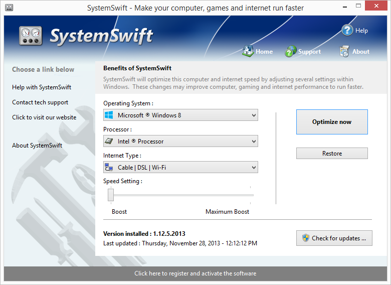 SystemSwift sets the standard for PC and game optimization software. A combination of our three products PCMedik, GameGain, and Throttle; SystemSwift instantly makes your computer faster and fixes common problems associated with frustrating slowdowns and errors, squeezes out every last bit of performance your computer and games are capable of and increases the speed of your internet connection.